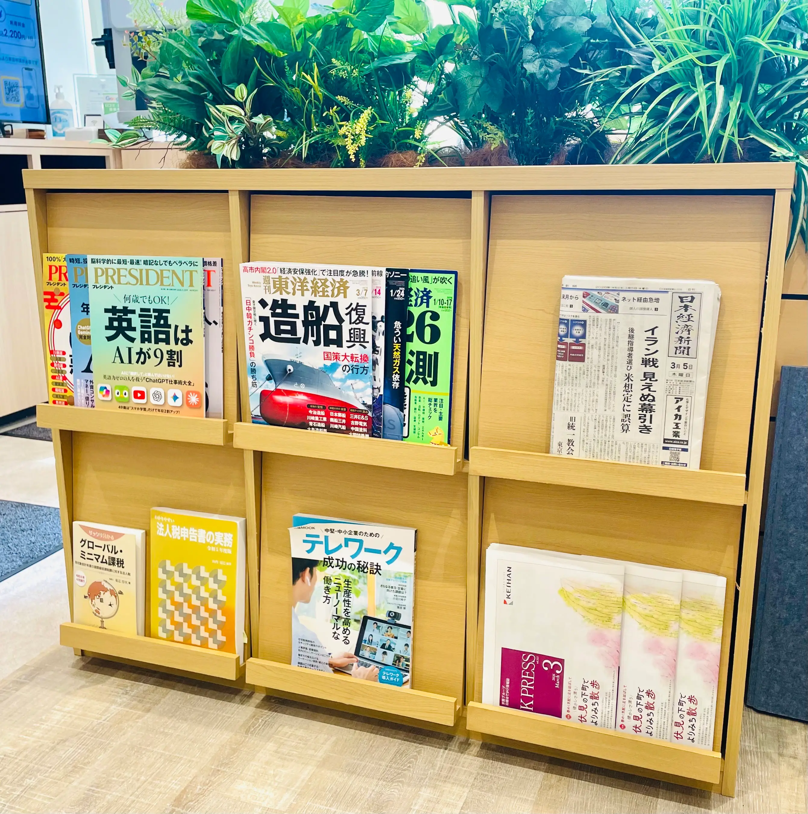 【ServiceOfficeW天満橋】「本棚」のご紹介:新聞・雑誌が読み放題!