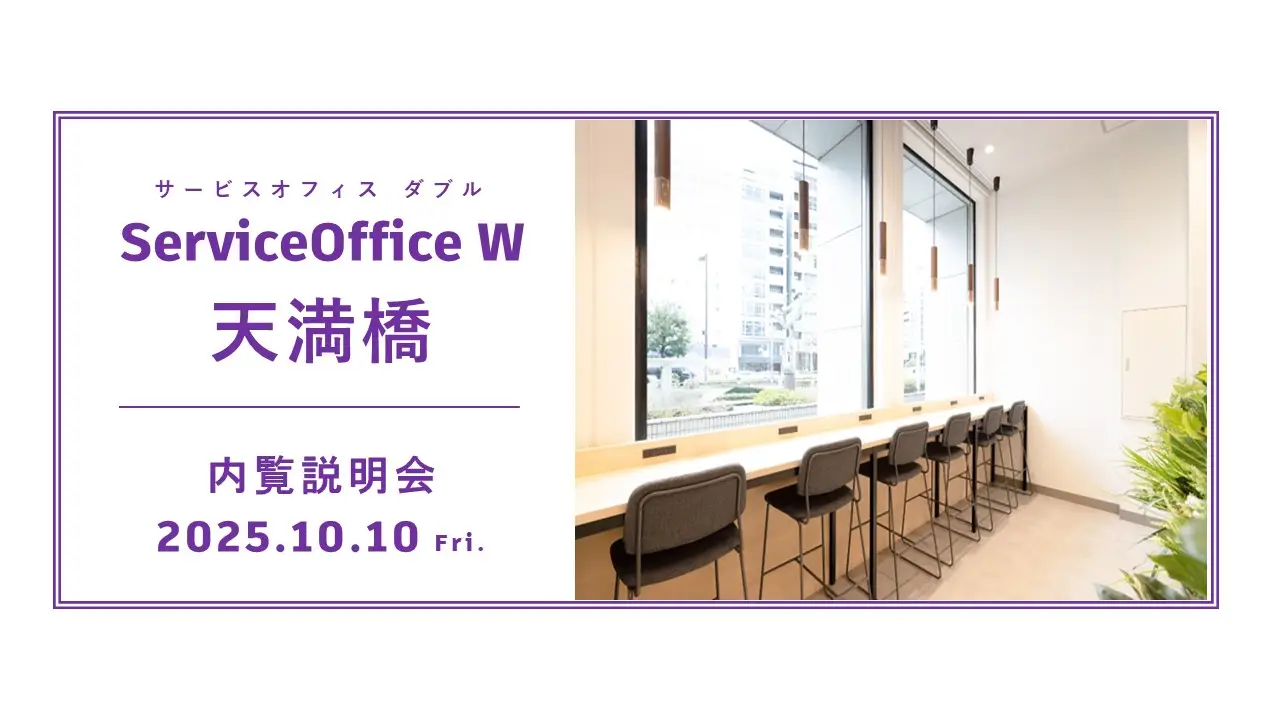 弊社運営のレンタルオフィス「ServiceOffice W 天満橋」では次のとおり内覧説明会を実施いたします。
